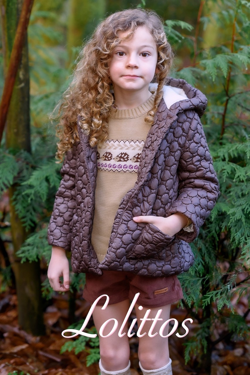 Abrigo para niño en marrón de la marca Lolittos, el interior viene forrado en pelo muy calentito.