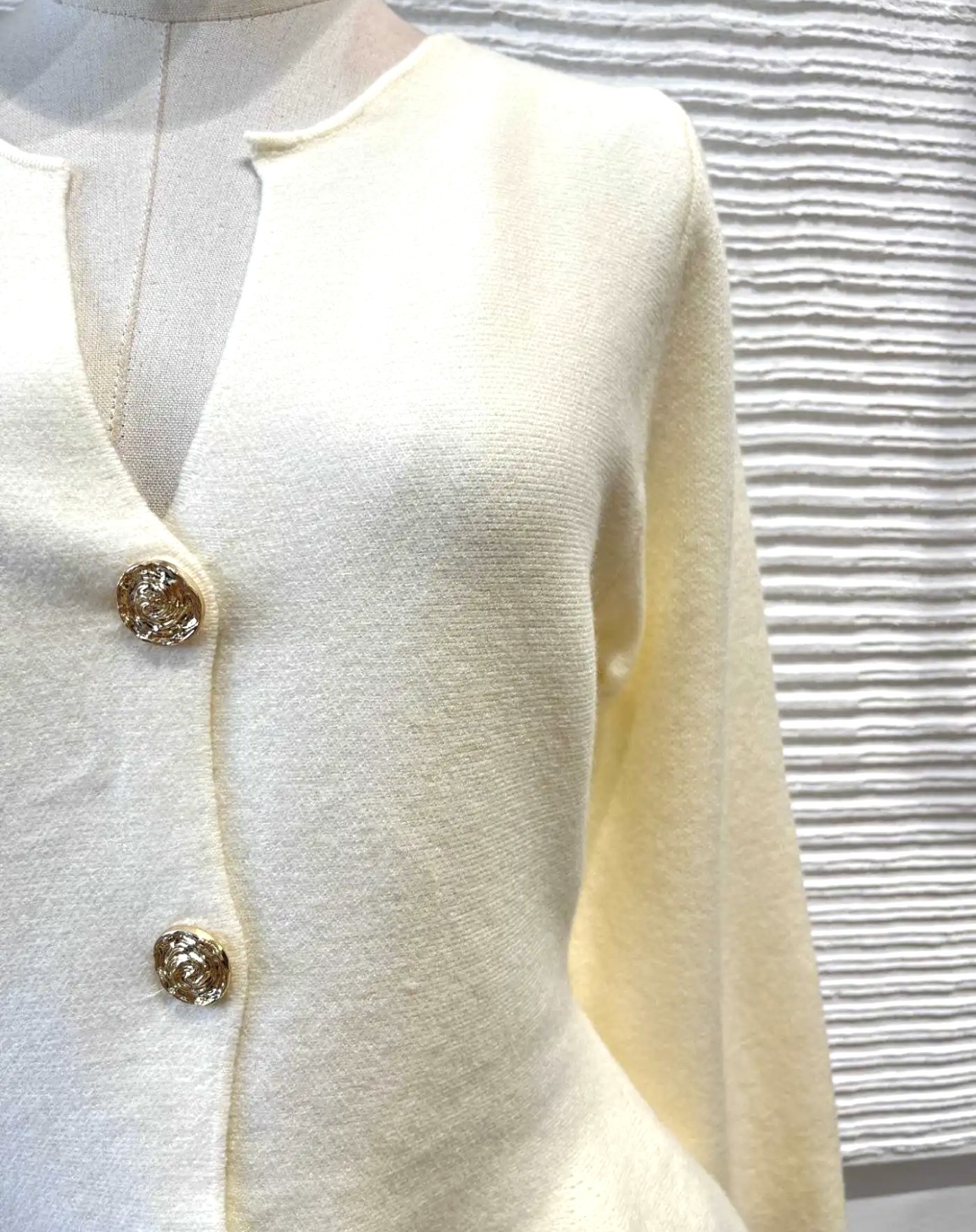 Chaqueta beige con corte evasé, botones efecto flor oro.