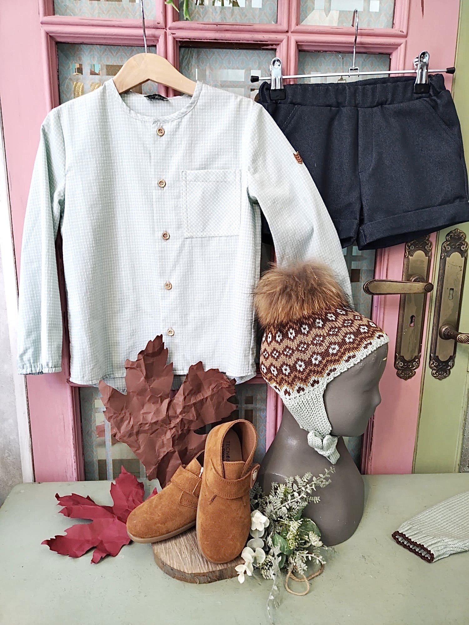 Camisa en verde agua y pantalón vaquero, colección Hippie de Lolittos.