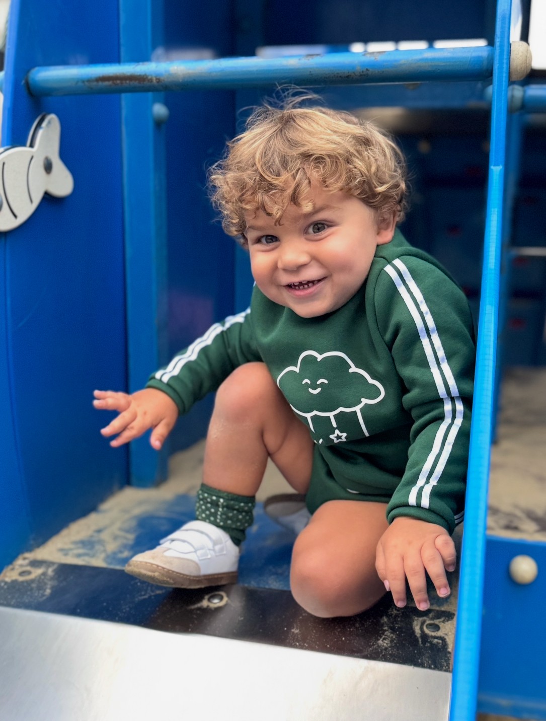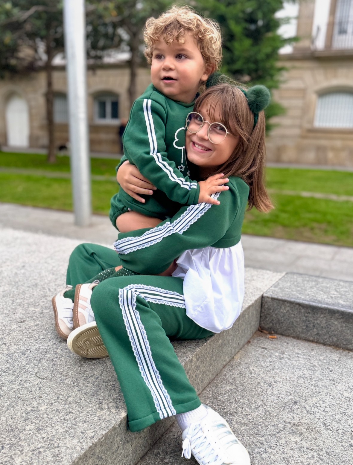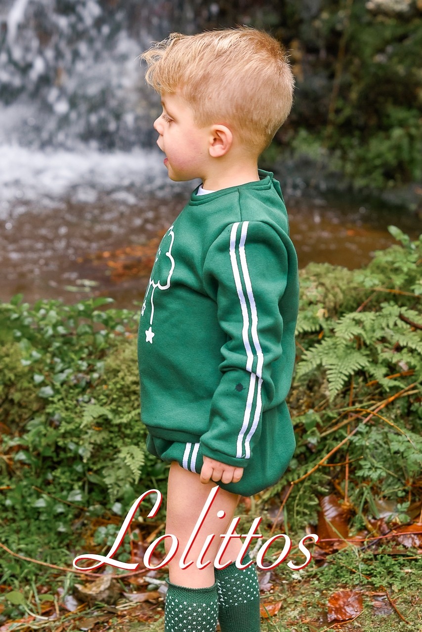 Felpa y rana deportiva para niño en verde botella, marca Lolittos.