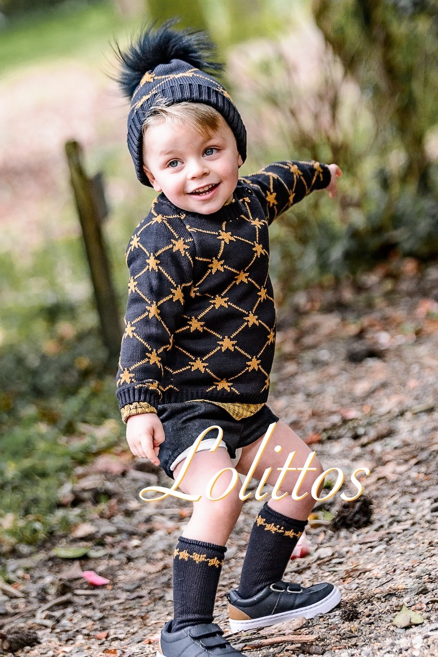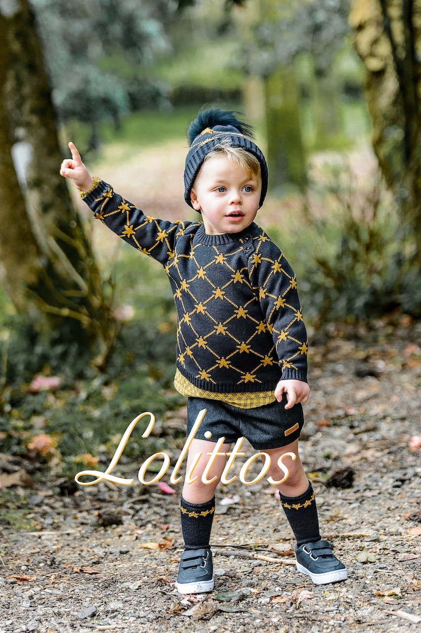 Jersey divertido para niño con estrellas en color mostaza de la marca Lolittos.