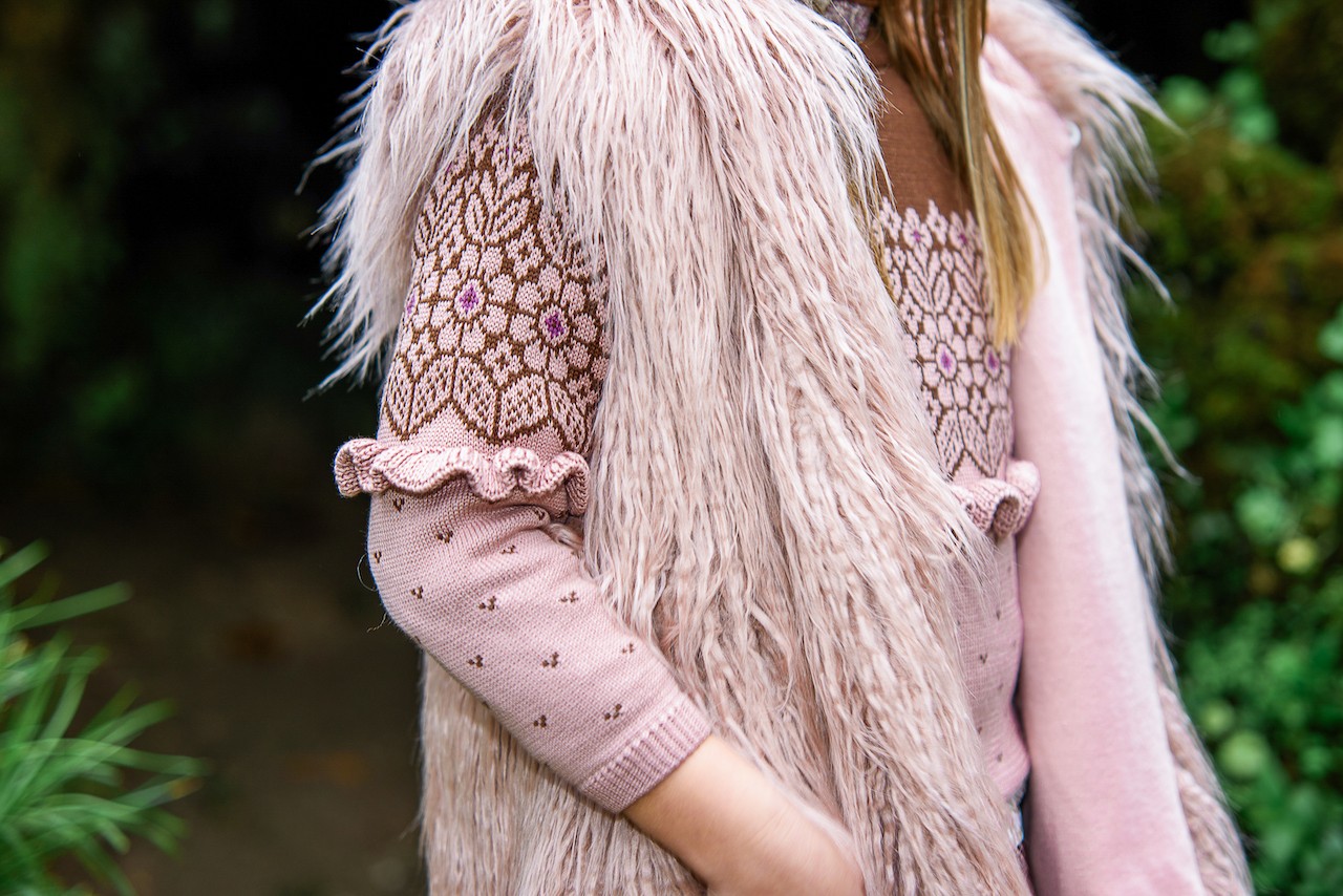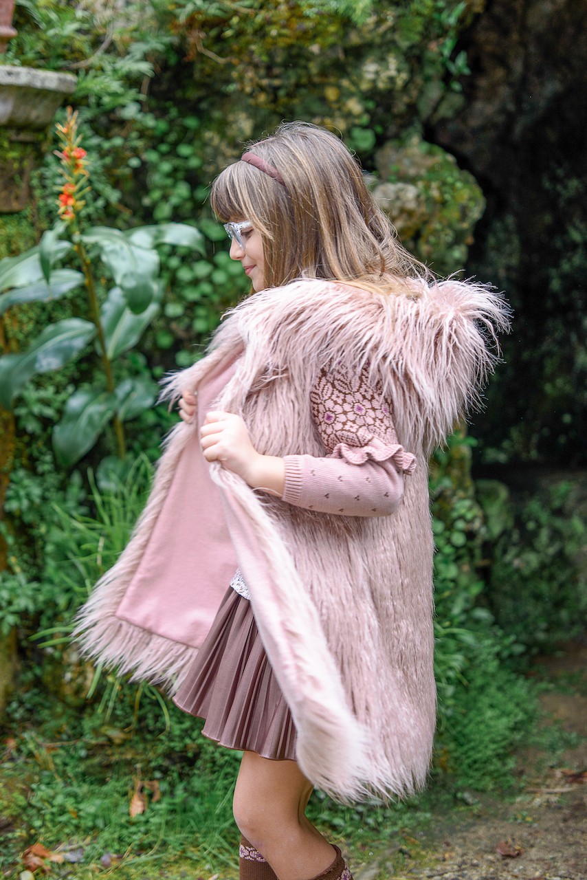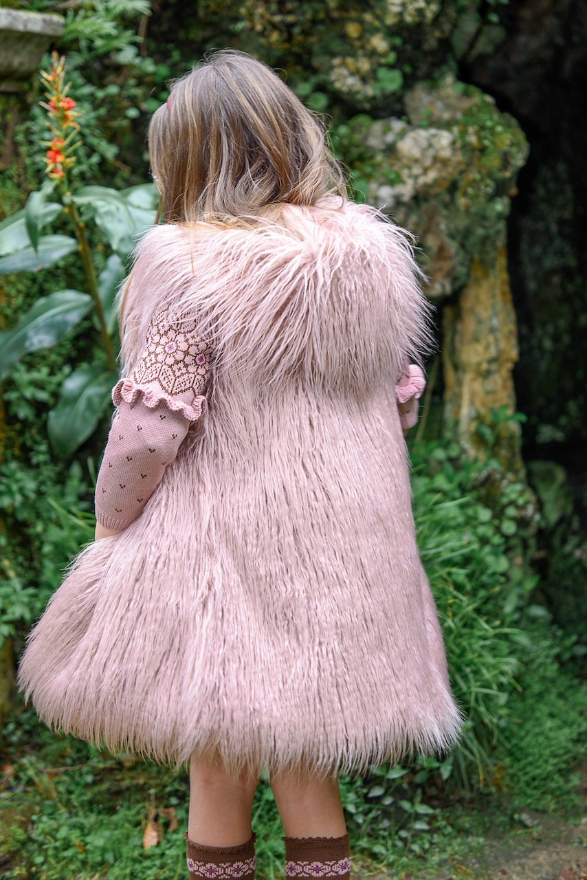 Chaleco largo en un pelo rosa palo muy original, marca Lolittos.