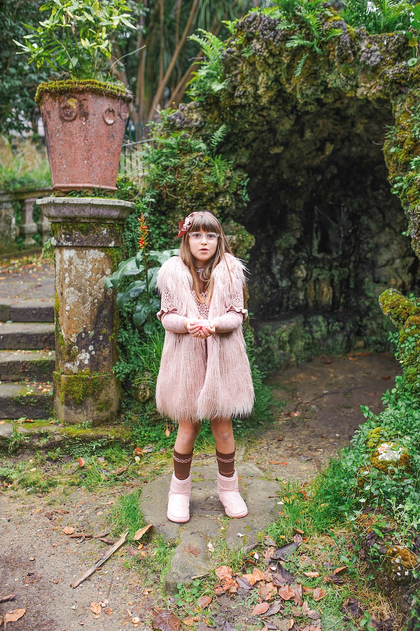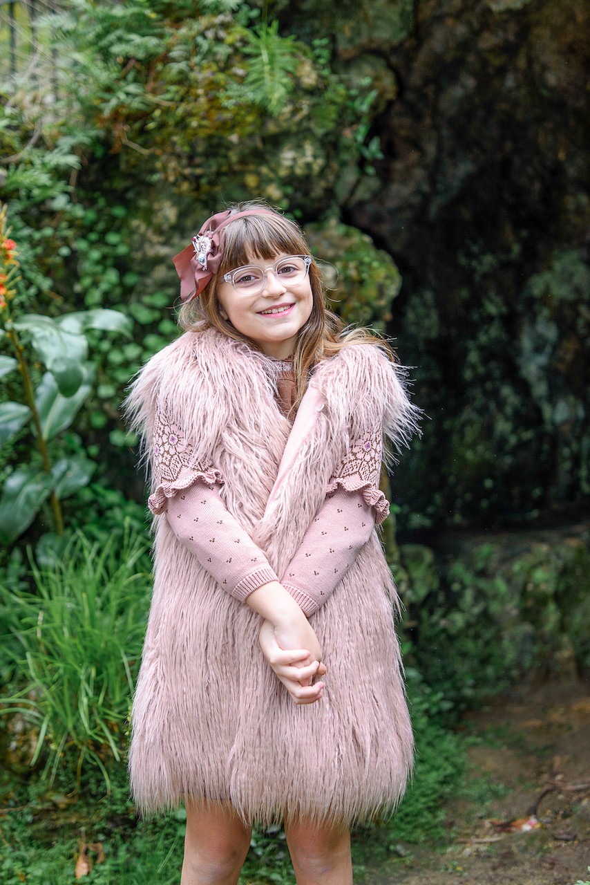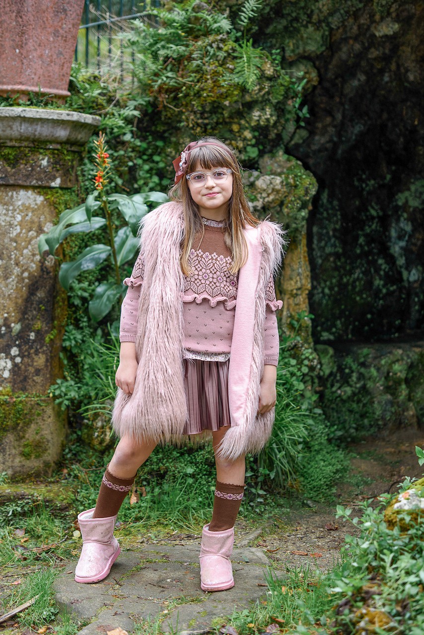 Chaleco largo en un pelo rosa palo muy original, marca Lolittos.