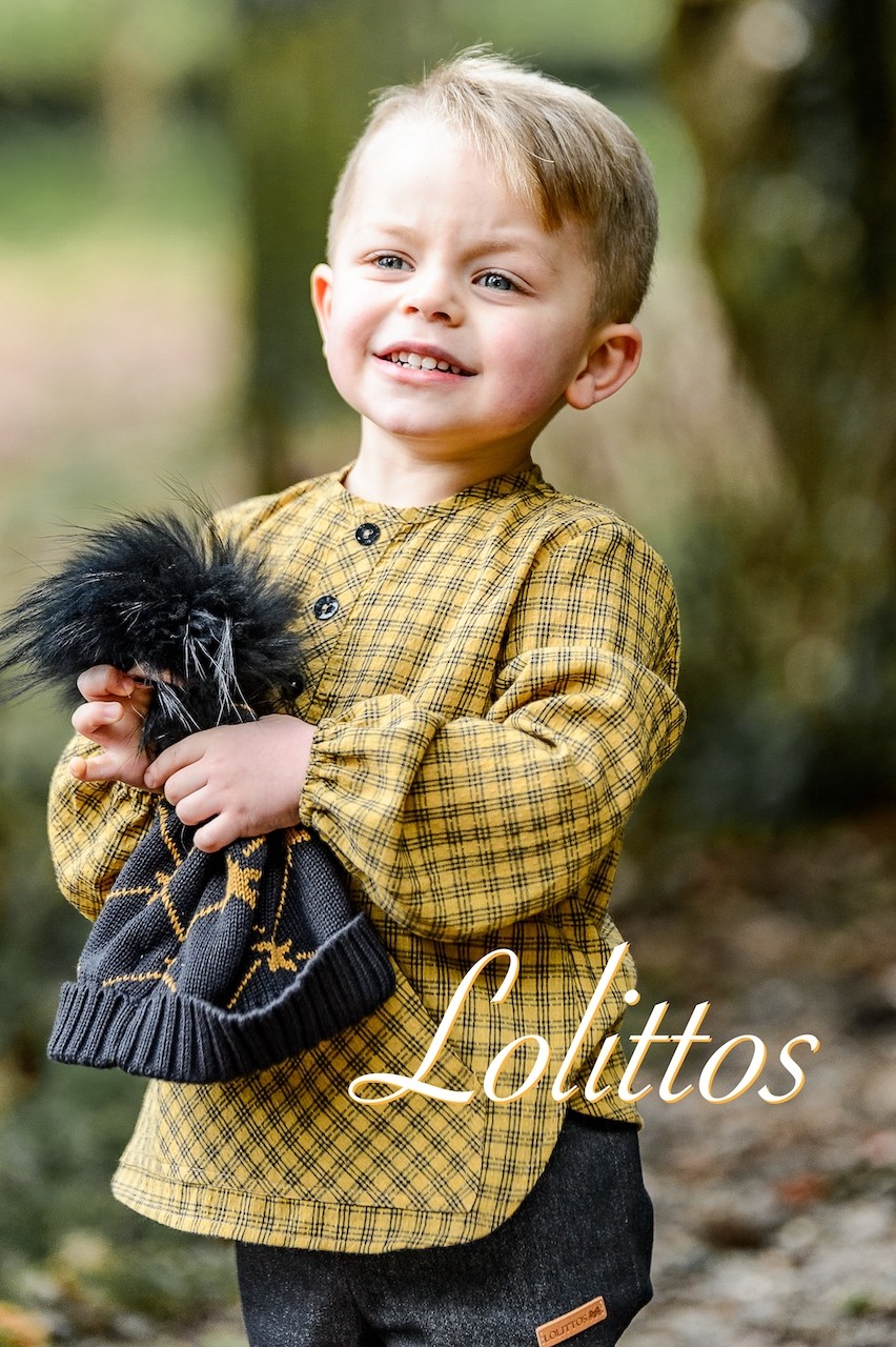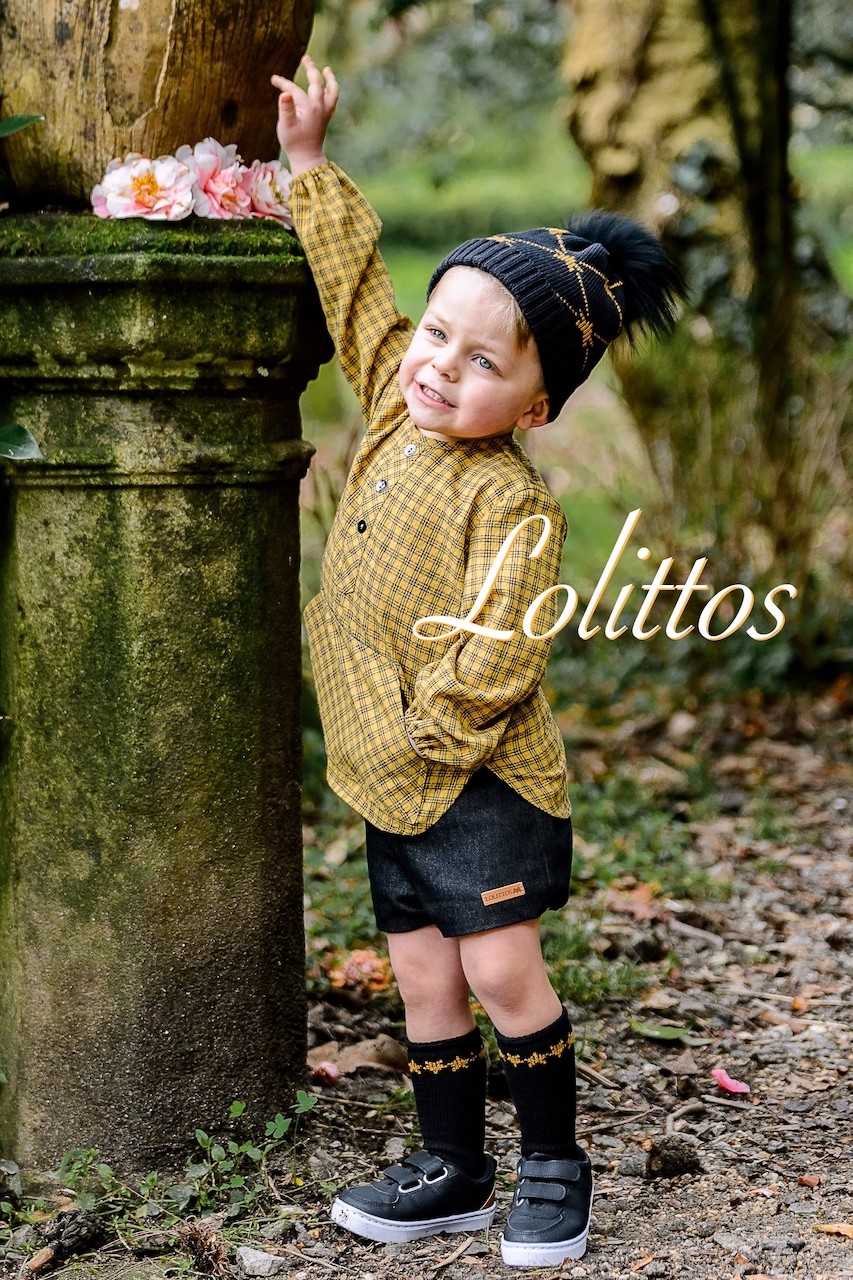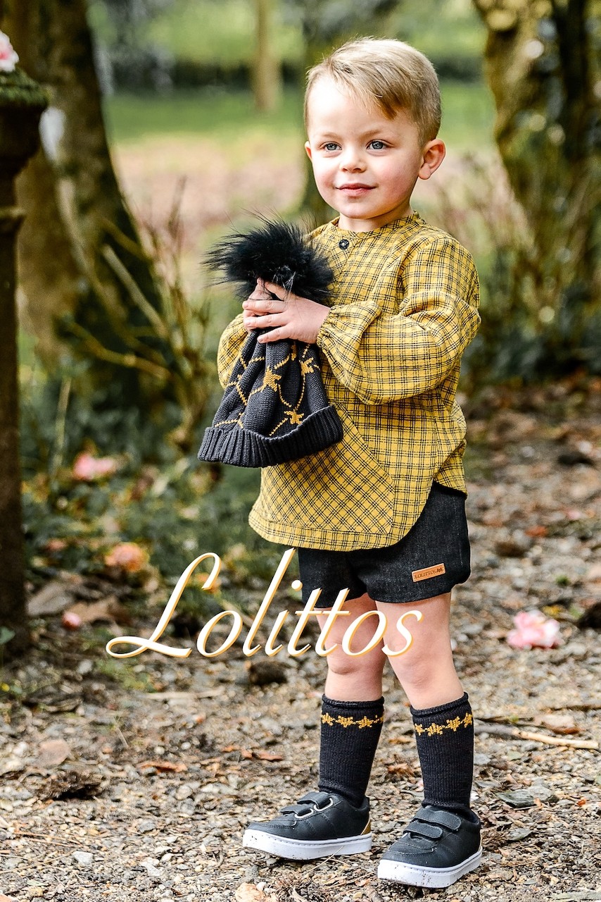 Camisa en cuadros mostaza con pantalón/rana corto vaquero de la marca Lolittos.