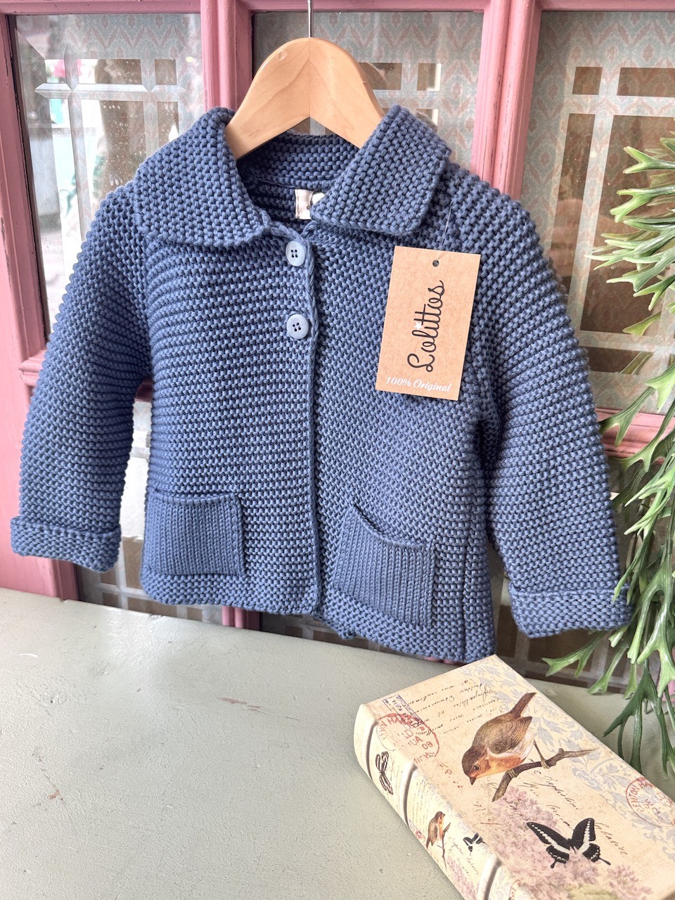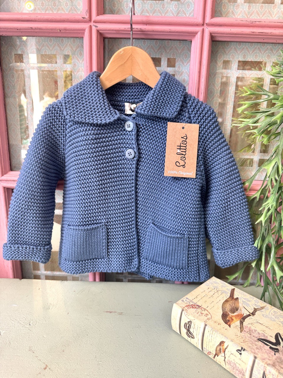 Abrigo en punto de algodón azul tejano.
