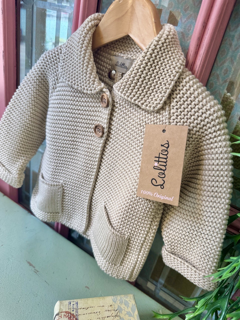 Abrigo de punto en algodón arena.