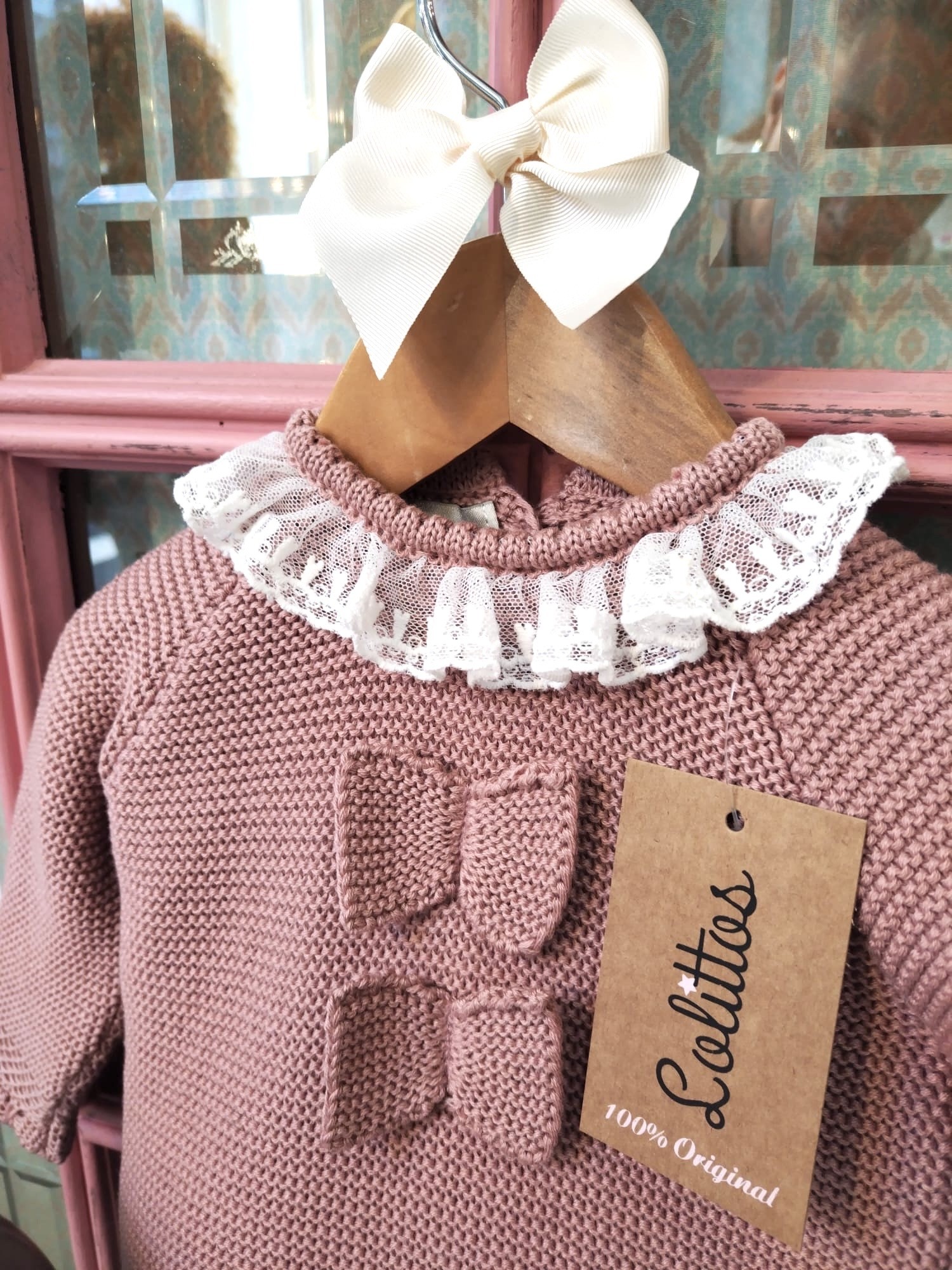 Precioso conjunto de punto en rosa palo para bebe de la marca Lolittos.