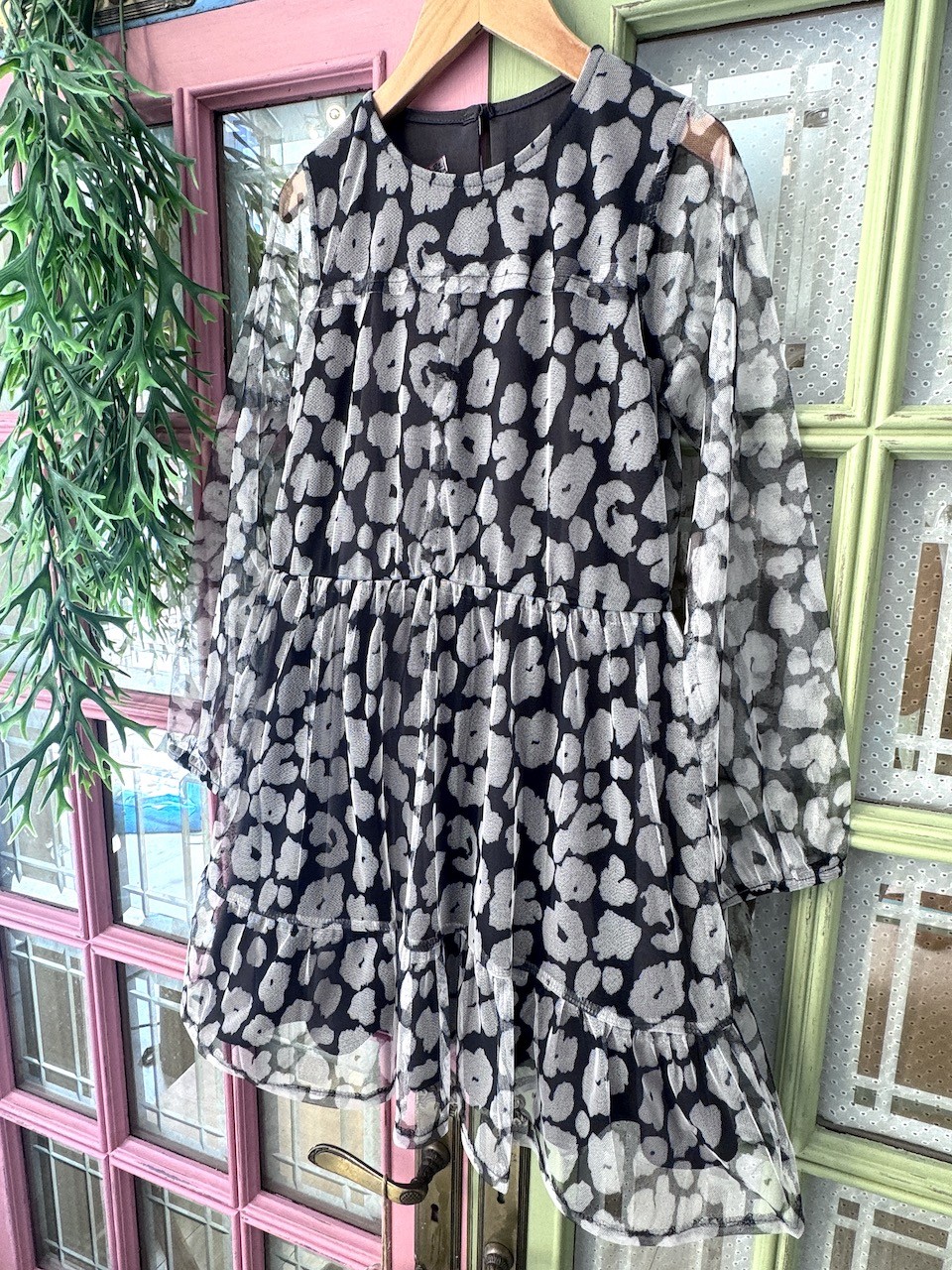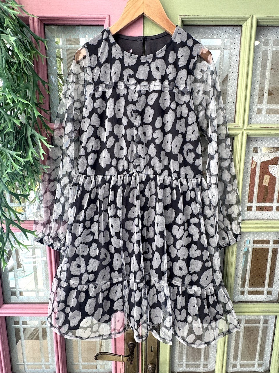Vestido de Energuiers en tul de leopardo muy vaporoso, con mangas transparentes.